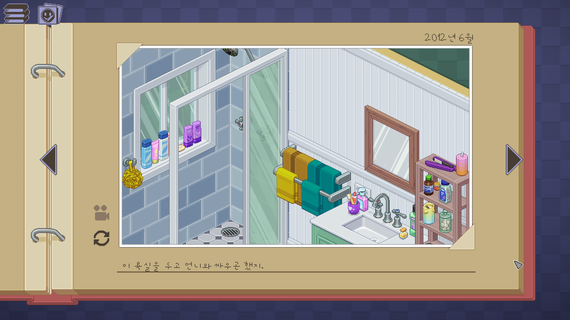 이후 앨범의 페이지를 한 장씩 넘기며, 시간의 흐름에 따라 변화하는 주인공의 집을 꾸미는 것이 게임의 핵심입니다.